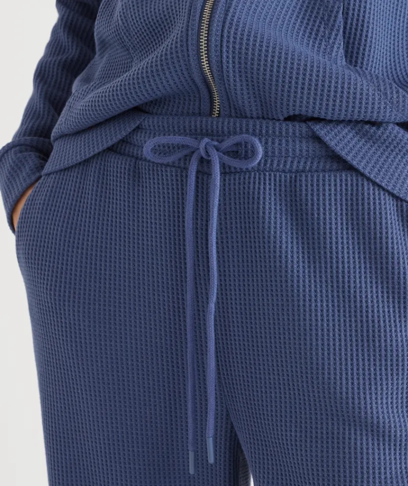 Complete your lounge look with our ultra-comfortable Waffle Lounge Pants in a stylish silver marle and cornflower hue. Crafted from soft, breathable waffle-knit fabric, these pants offer a relaxed fit and exceptional comfort for all-day wear. The elasticated waistband with a drawstring provides a customisable fit, while the relaxed leg design ensures a laid-back, easy-going silhouette.