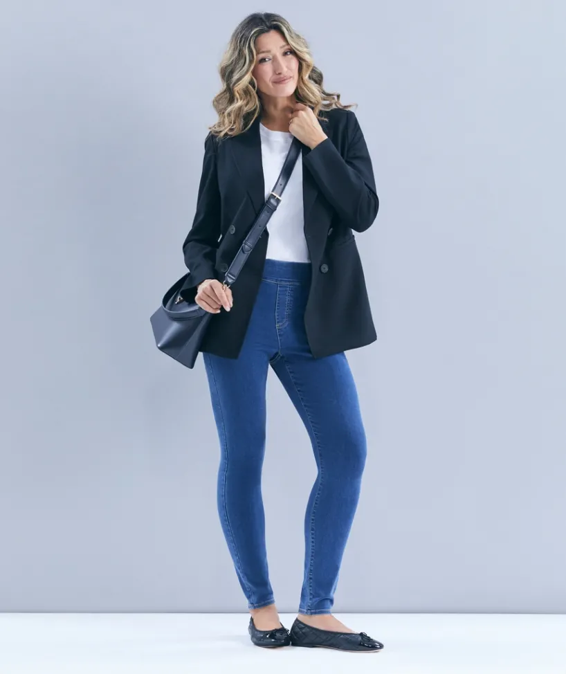 Introducing our Denim Jegging, part of our new Sussan Denim Range. The Denim Jegging is crafted from high-quality comfort stretch denim which offers a flattering fit. With a high-rise, fitted silhouette, these pull-on jeggings combine both style and comfort. This design offers a smooth, seamless look with mock pockets and minimal design, making it the perfect versatile piece for any outfit. The Denim Jegging is easy to dress up or down and is a must-have addition to your wardrobe for effortless, all-day wear.