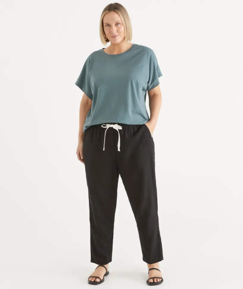 The perfect addition to your everyday wardrobe is our Relaxed Drawstring Tapered Pant. This pant was designed with both comfort and style in mind with its soft and drapey linen blend fabrication and elasticated waistband, making it the must have everyday piece to add to your wardrobe.