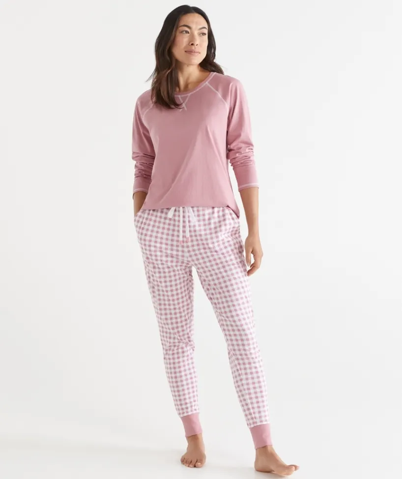 Introducing the Tapered Gingham Pyjama Pant, crafted with the utmost care and precision to bring you unparalleled comfort and style. Made from the finest Australian cotton, this sleepwear masterpiece will envelop you in a world of exquisite softness and luxury.
