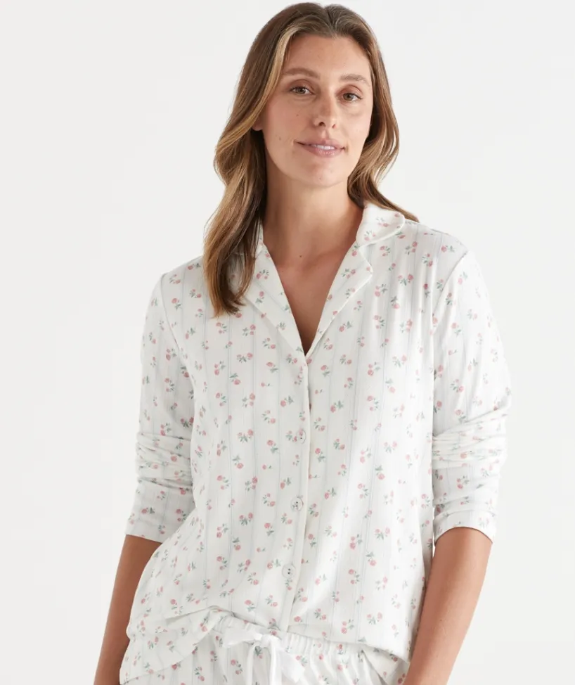 Embrace ultimate comfort with our Brushed Pointelle Flora Ditsy Pyjama Set, featuring a Sussan exclusive ditsy print. Crafted from luxuriously soft brushed pointelle fabric, this set offers a gentle, textured feel with added warmth—perfect for cosy nights in. The delicate ditsy floral print brings a timeless and feminine touch to your sleepwear collection.