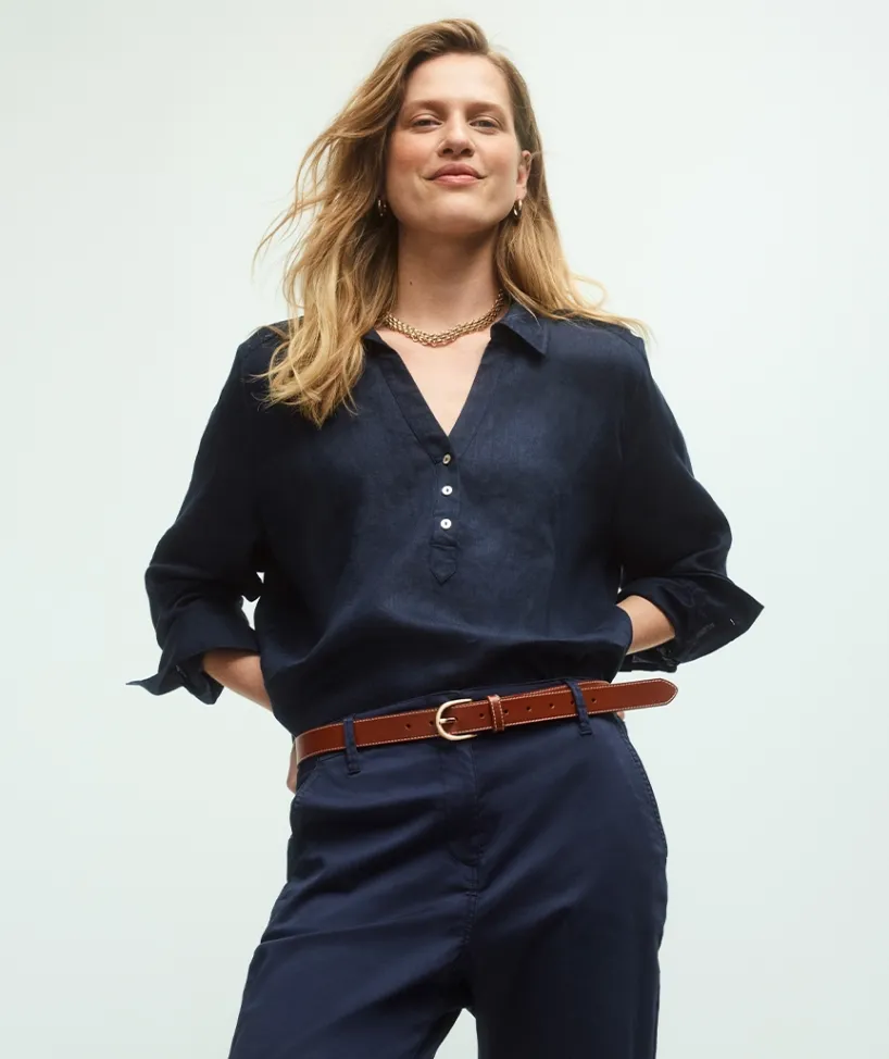 Welcome back a shape that you know and love, this time in solid colours, an even more versatile piece in stunning new colours for the season. This shirt has all the most wanted attributes, put together in a flattering way in 100% linen. A feminine split back with button detailing, this popover shirt is your next wardrobe staple.