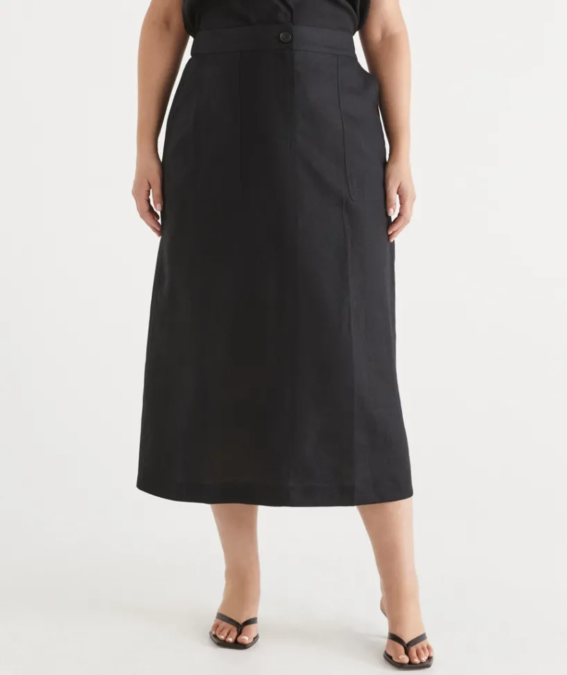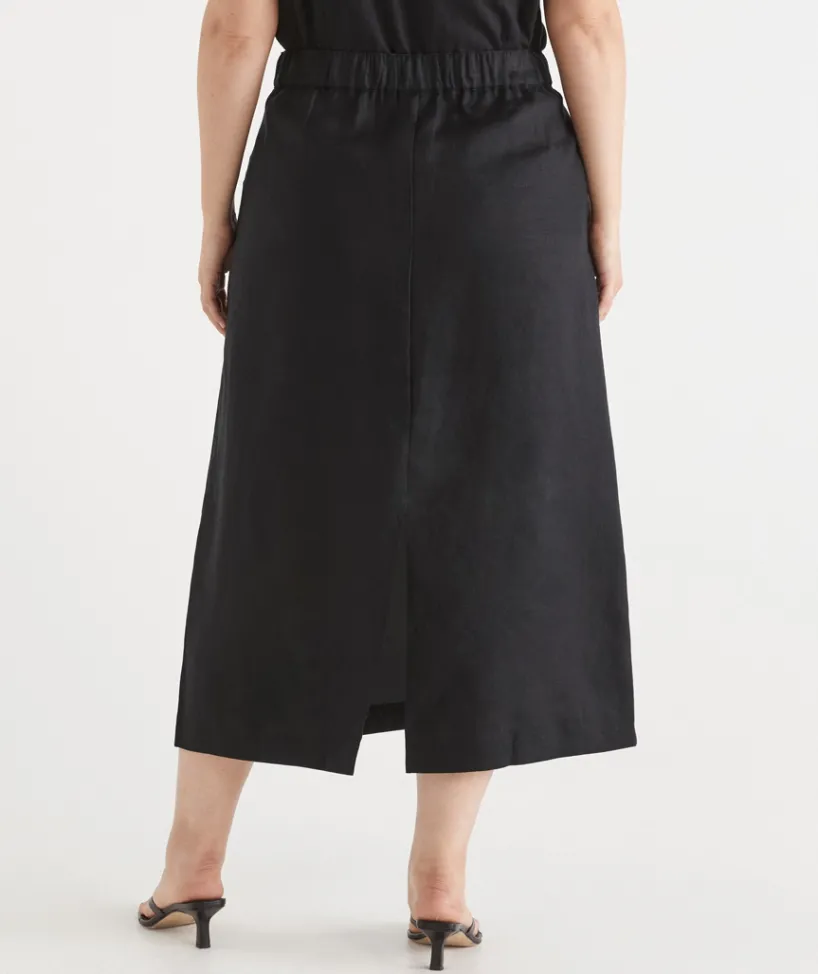 Introducing our Linen Column Midi Skirt — a refined take on a timeless favourite. Crafted from 100% linen, this sleek column silhouette is elevated with contrast stitching for a modern edge. Designed to flatter, it transitions effortlessly from day to night. Pair it with a crisp shirt for a sharp, tailored look or a soft knit for relaxed sophistication. Versatile and chic, it’s a staple you’ll reach for season after season.