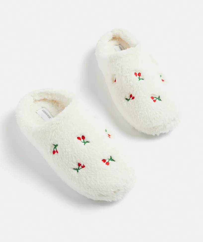 Introducing the Cherry Fluffy Slippers—your new definition of cosy! These slippers combine the ultimate in comfort with a playful touch of charm. The soft, plush material gently cradles your feet, keeping them warm and pampered all day long. The vibrant cherry embroidery pops against the calming cream base, adding personality to your loungewear. Designed with relaxation in mind, these slippers offer a cloud-like feeling with every step.