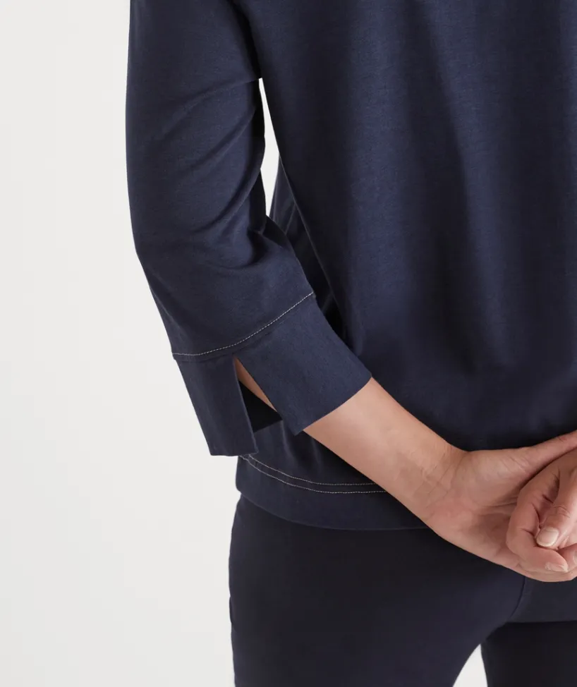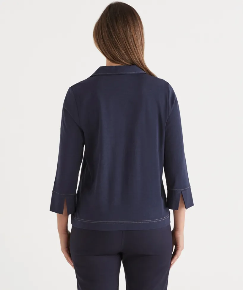 This easy-to-wear Contrast Stitch Collared 3/4 Sleeve Top, is the perfect addition to your everyday wardrobe. It features contrast stitching, bracelet-length sleeves and a flattering collared neckline. This top can take you from day to night this season.