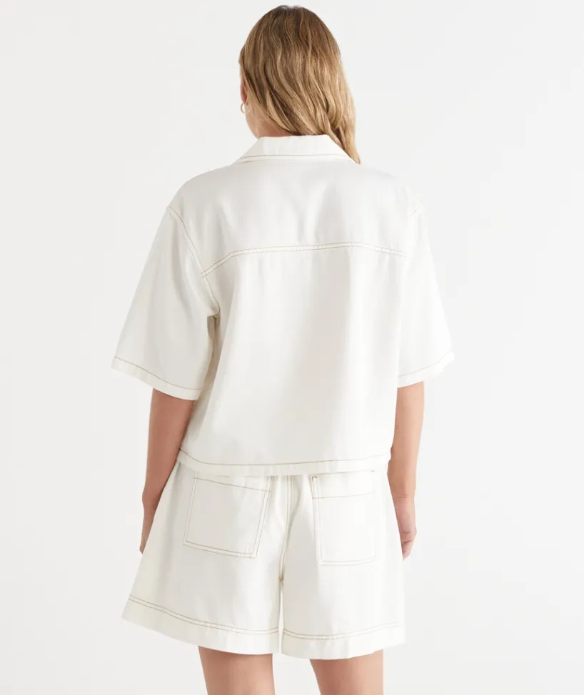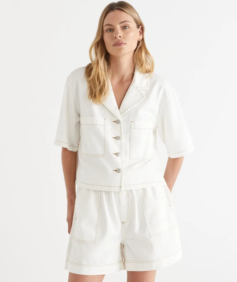 Introducing our new Short Sleeve Denim Jacket, crafted from a soft, lightweight cotton tencel blend for the ideal combination of comfort and style. This jacket is the perfect addition to your summer wardrobe, featuring front pocket detailing and a button down front. Easily style back with our matching ‘Contrast Stitch Short’ for a stylish double denim look. Now Available in two colours