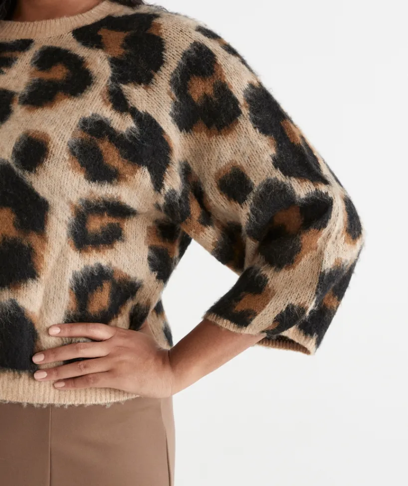 Make a statement this season with our Leopard Print 3/4 Sleeve Knit Top, designed to be worn on its own or layered. Featuring a crew neckline, short sleeve and relaxed silhouette.