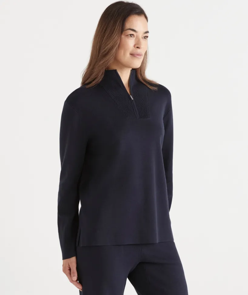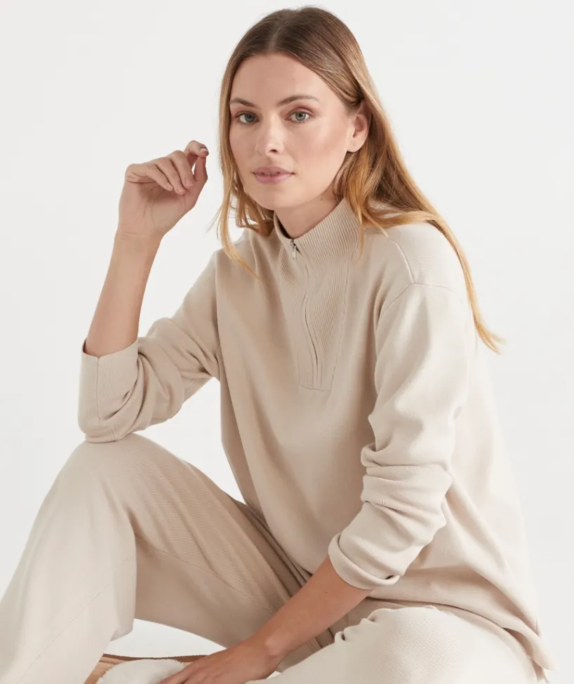 Elevate your everyday comfort with our Milano Quarter Zip Lounge Jumper, crafted in a soft and luxurious crepe knit. Designed for effortless layering, this relaxed-fit sweater features a modern ribbed collar with a functional quarter-zip for versatile styling—wear it zipped up for a clean, structured look or open for a laid-back vibe.