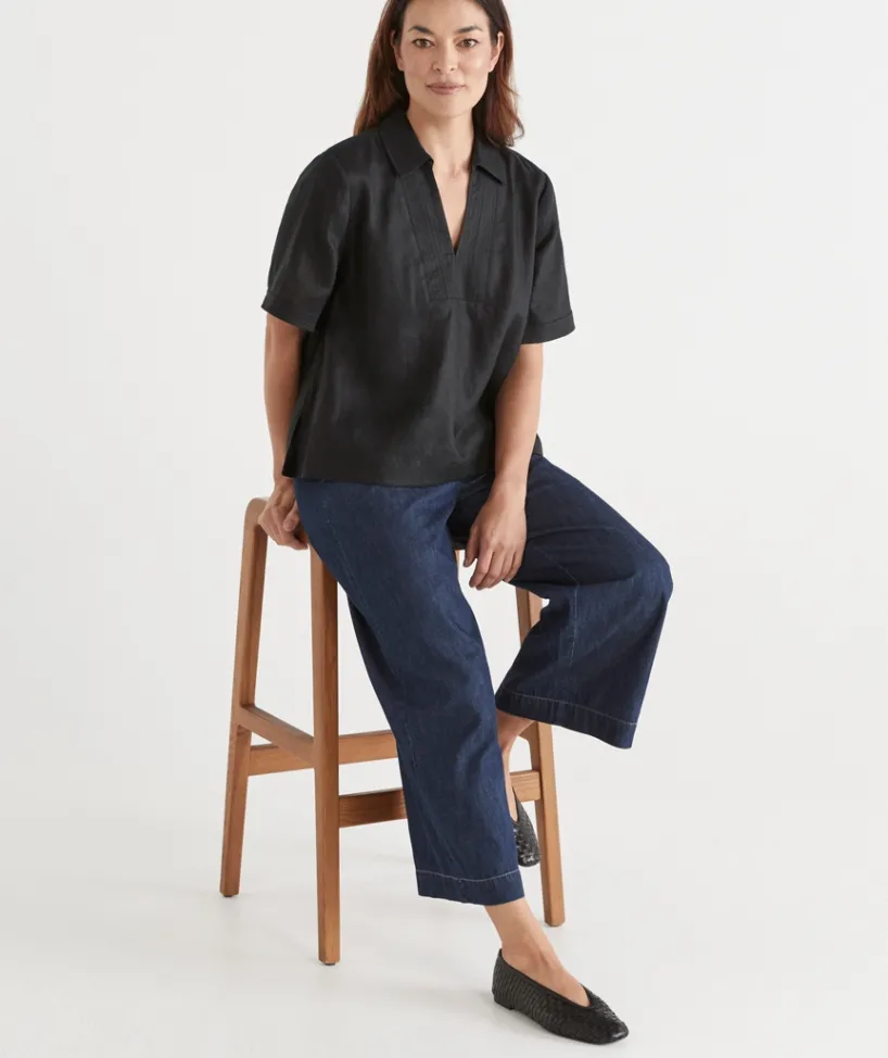 The Stitch Detail Short Sleeve Top is a wardrobe staple, crafted from 100% linen, offering both comfort and style. Featuring delicate stitch details at the neckline and a wide hem and cuff finish, this popover is elevated with small design details. Whether dressed up or down, its relaxed yet refined design makes it a perfect addition to any wardrobe.