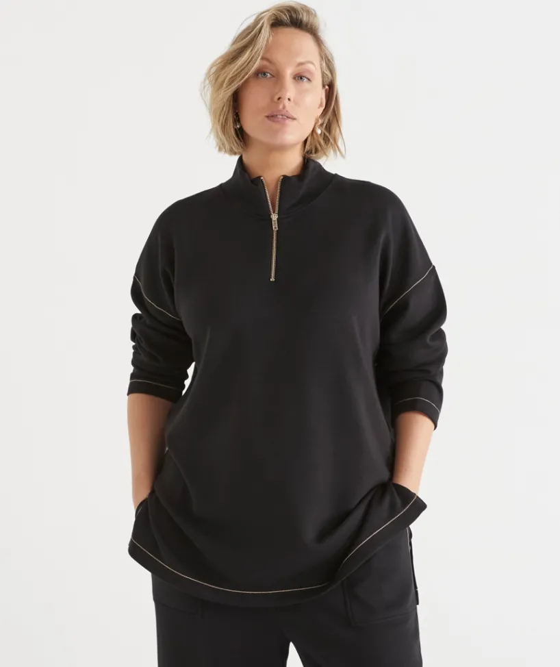 Discover our EssentialSoft Contrast Stitch Quarter-Zip Jumper. Your go-to layering piece for effortless comfort and style. Crafted from our buttery-soft, lightweight EssentialSoft fabrication, this sweat delivers a luxe feel with a smooth finish that’s irresistibly soft against the skin. Designed to transition seamlessly from cooler to warmer months, it’s perfect for layering over your favourite top.