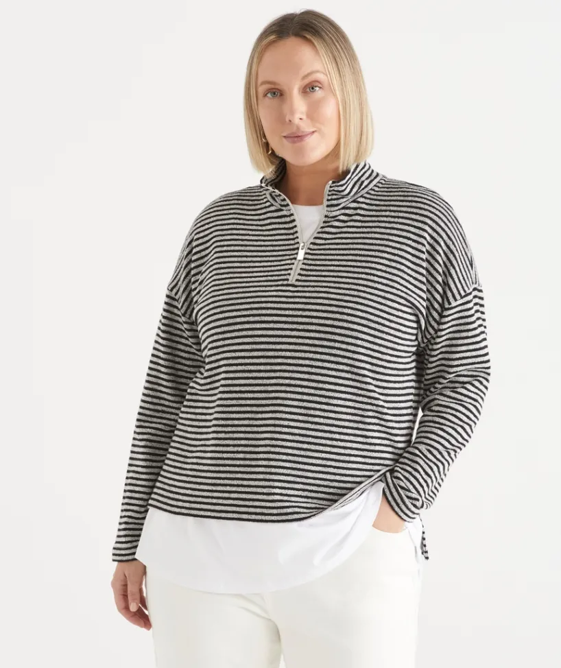 Discover our Lightweight Stripe Zip Sweat. Your go-to layering piece for effortless comfort and style. Pair back with denim or any of our joggers.