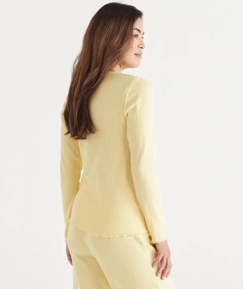 Drift into dreamy comfort with our Pointelle Long Sleeve Pyjama Top, designed for a cosy yet elegant sleepwear experience. Made from soft, breathable fabric with delicate pointelle detailing, this long-sleeve top offers a lightweight feel and a touch of timeless charm. The relaxed fit ensures all-night comfort, while the subtle texture adds a feminine, vintage-inspired touch.