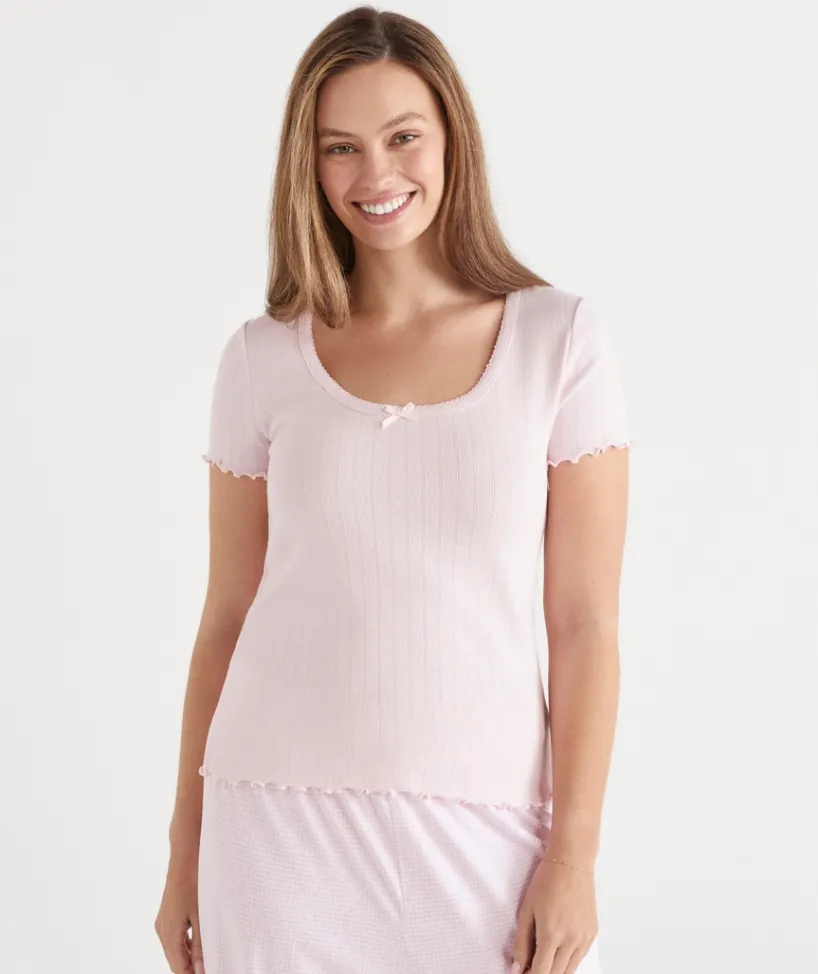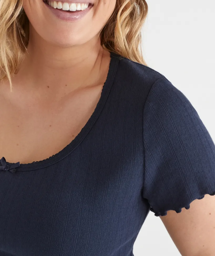 Drift into cosy comfort with our Short Sleeve Pointelle Pyjama Tee, crafted from a soft and breathable organic cotton-elastane blend. Featuring a delicate pointelle knit, this top offers a lightweight feel with a touch of elegance, perfect for restful nights and relaxed mornings.