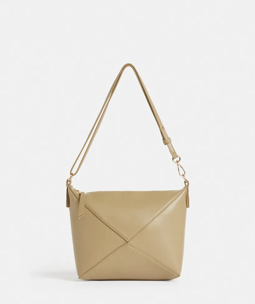 Elevate your everyday style with this Panelled Shoulder Bag in washed khaki, a perfect blend of modern design and classic charm. The soft, neutral hue adds a sophisticated touch, making it a versatile accessory for any wardrobe.