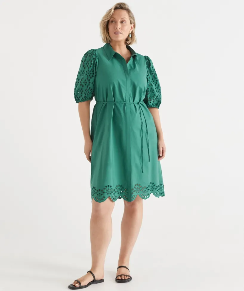 Introducing our Broderie Puff Sleeve Dress is crafted from breathable cotton complete with intricate broderie detailing. Featuring a crisp collar neckline and puff sleeves with an optional belt, this dress will take you from day to night.