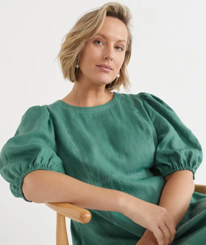 Our Linen Stitch Detail Short Sleeve Midi Dress is crafted from breathable linen and based on a best-selling silhouette. Designed with feminine short sleeves with elasticated openings for all-day comfort, and eye-catching contrast stitch along the front for added detail.