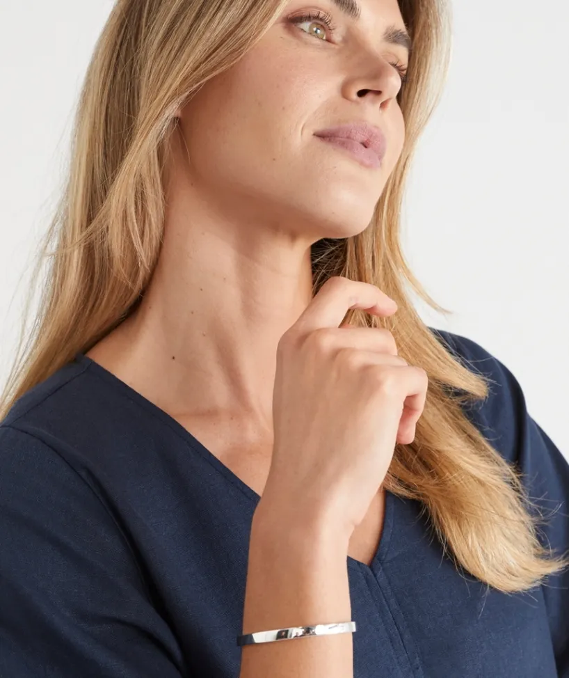 Crafted with precision, this elegant Sterling Silver Plated Hinge Cuff Bracelet features a sleek, minimalistic design with a secure hinge closure for effortless wear. The sterling silver-plated finish offers a luxurious shine, enhancing any outfit from casual to formal. Whether worn alone or stacked with other pieces, this cuff makes a bold statement of style and elegance.