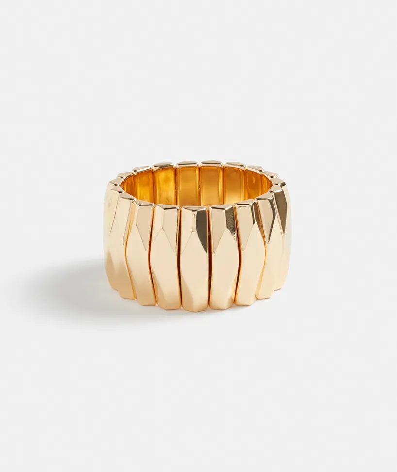 Make a bold yet elegant statement with our Gold Stretch Cuff. Designed with a mesmerising geometric pattern, this cuff features interwoven diamond-shaped details that create a sophisticated and eye-catching look. The polished gold-tone finish enhances its luxurious appeal, while the flexible stretch design ensures a comfortable and effortless fit.