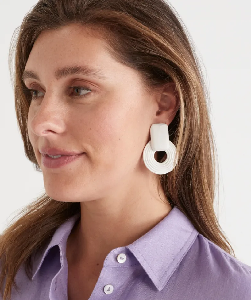 Add a touch of natural elegance to your look with our Wooden Drop Statement Earrings in a pristine white finish. Expertly handcrafted from sustainably sourced wood, these earrings feature a smooth, polished surface that highlights the unique grain of each piece while offering a clean, modern aesthetic. The lightweight design ensures comfort, and the drop creates a graceful, effortless dangle.