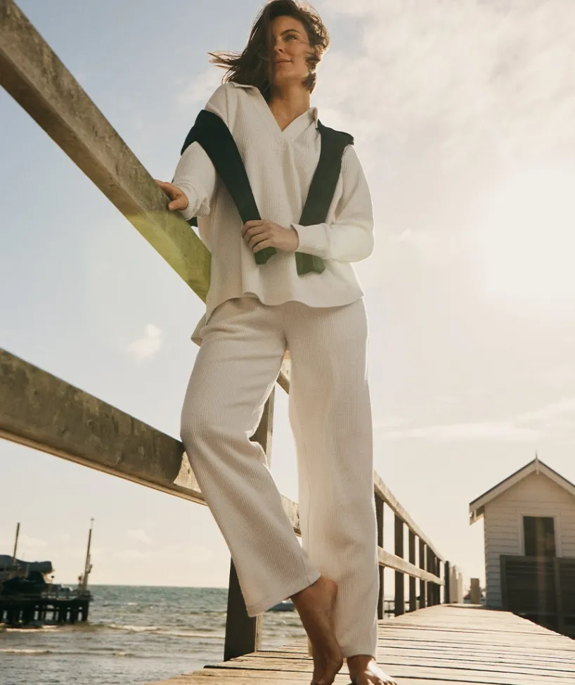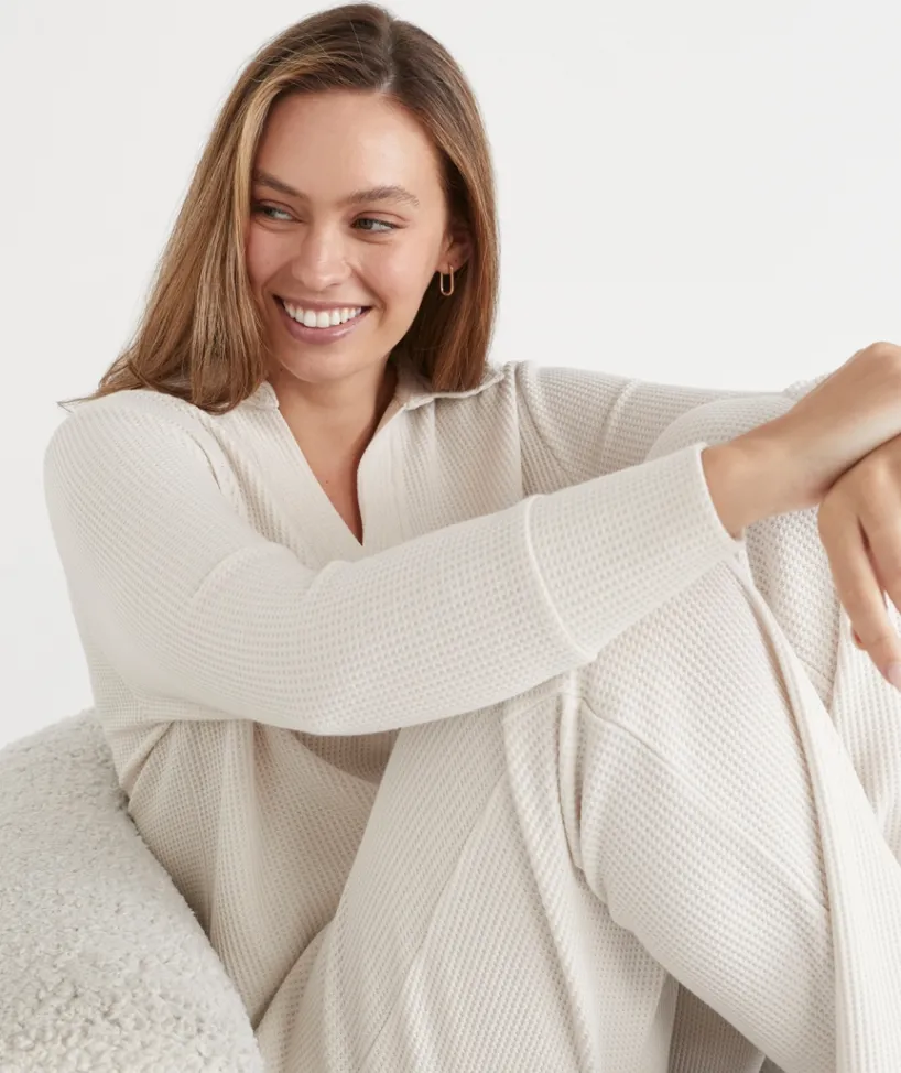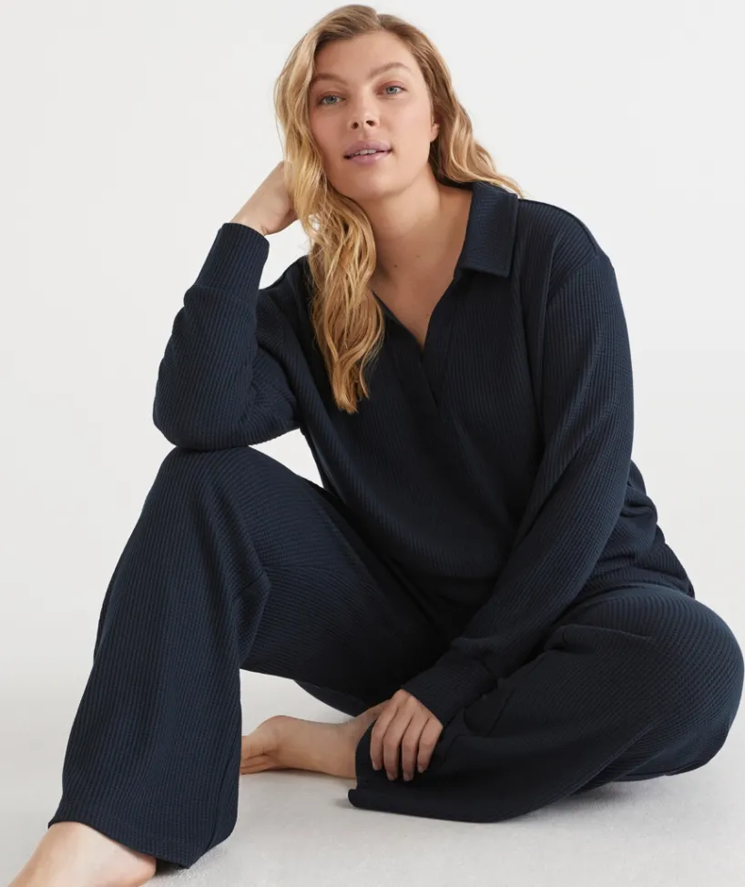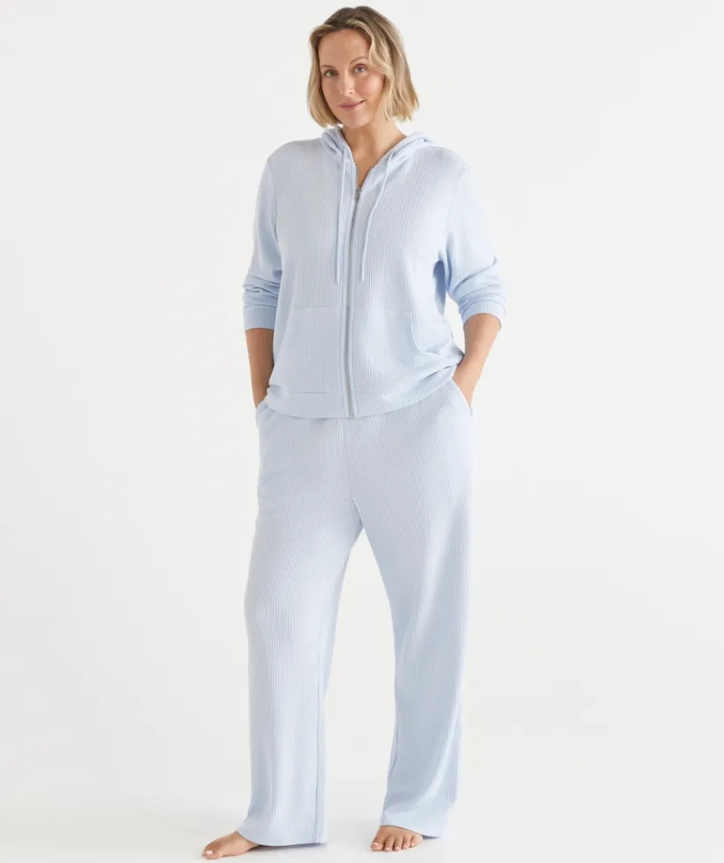 Complete your lounge look with our ultra-comfortable Waffle Lounge Pants in a stylish silver marle and cornflower hue. Crafted from soft, breathable waffle-knit fabric, these pants offer a relaxed fit and exceptional comfort for all-day wear. The elasticated waistband with a drawstring provides a customisable fit, while the relaxed leg design ensures a laid-back, easy-going silhouette.