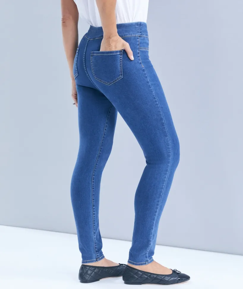 Introducing our Denim Jegging, part of our new Sussan Denim Range. The Denim Jegging is crafted from high-quality comfort stretch denim which offers a flattering fit. With a high-rise, fitted silhouette, these pull-on jeggings combine both style and comfort. This design offers a smooth, seamless look with mock pockets and minimal design, making it the perfect versatile piece for any outfit. The Denim Jegging is easy to dress up or down and is a must-have addition to your wardrobe for effortless, all-day wear.
