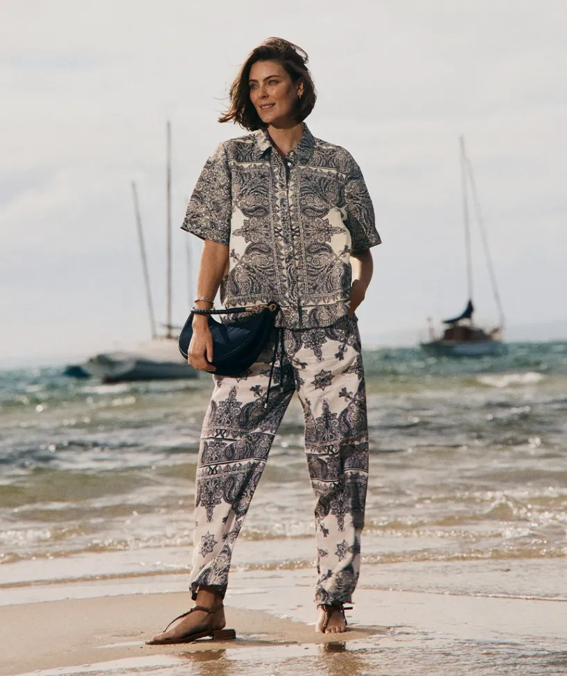 Elevate your everyday style with our Bandana Print Drawstring Wide Leg Linen Pant. Designed in a soft linen fabric with a feminine bandana print, this relaxed silhouette brings effortless style to your wardrobe. Featuring an adjustable drawstring waist and wide leg silhouette, these pants offer all-day comfort and style. Pair back with the ‘Bandana Print Long Sleeve Shirt’ for a chic head-to-toe look.