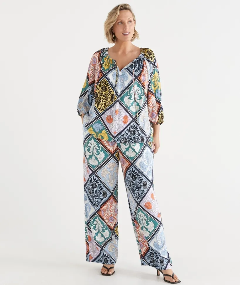 Add some fun to your wardrobe with our Mosaic Print Wide Leg Pant, the perfect combination of fashion and comfort with a pull-on elastic waist and wide leg silhouette. Pair back with the ‘Mosaic Scarf Blouse’ to create an elevated look or mix and match with wardrobe basics.
