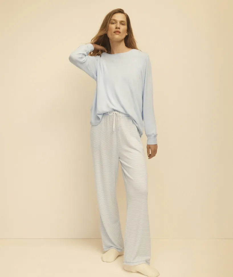 Drift into dreamland with our Signature Soft Wide Leg Stripe Pyjama Pant, crafted from luxuriously soft brushed fabric for an irresistibly cosy feel. Designed to keep you warm without weighing you down, these lightweight yet plush pyjama pants offer a relaxed fit with a gentle stretch. The elastic waistband with an adjustable drawstring ensures a custom fit, while the ultra-soft brushed texture makes them perfect for lounging and unwinding in pure comfort.