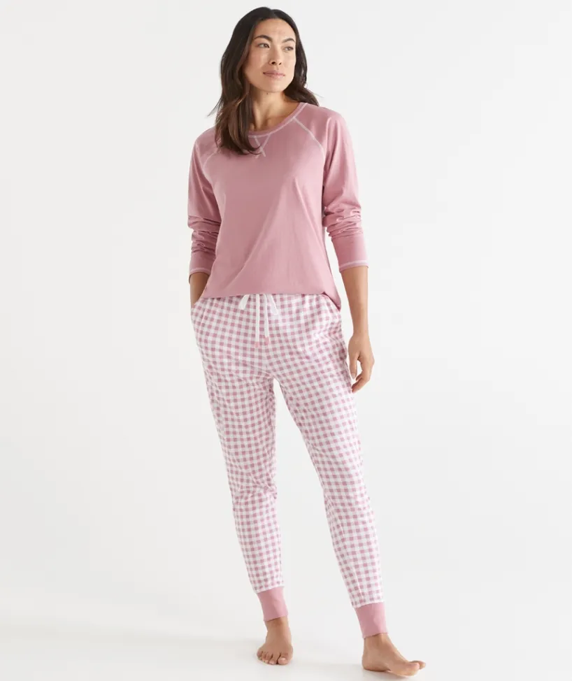 Introducing the Tapered Gingham Pyjama Pant, crafted with the utmost care and precision to bring you unparalleled comfort and style. Made from the finest Australian cotton, this sleepwear masterpiece will envelop you in a world of exquisite softness and luxury.