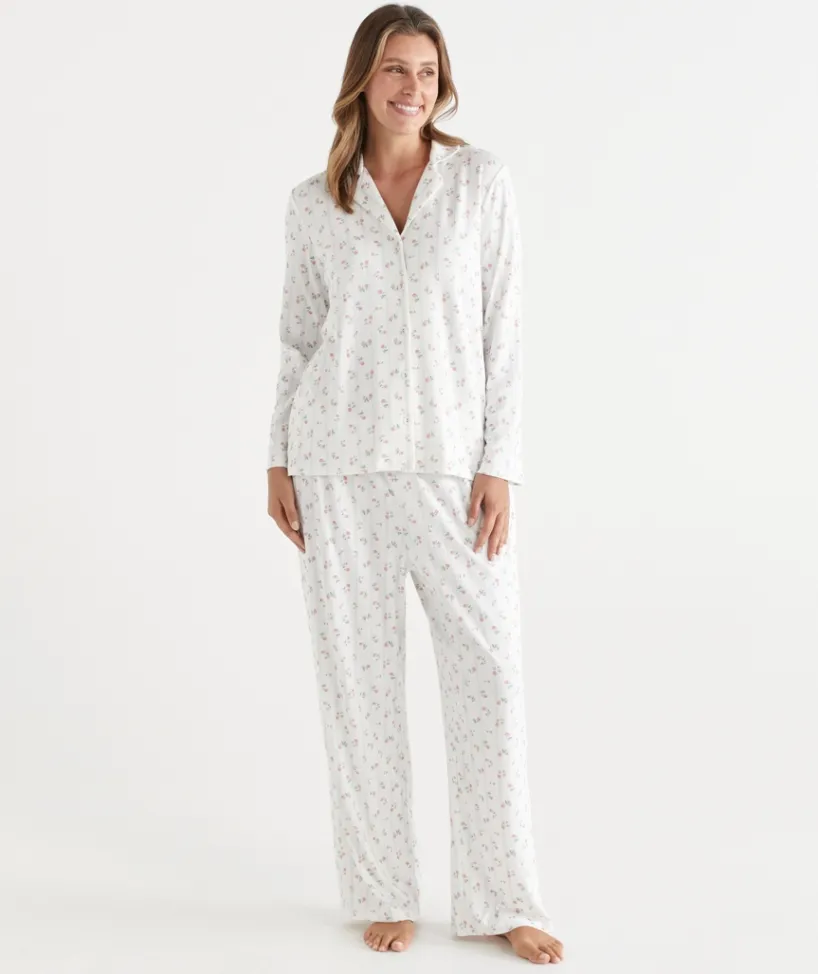 Embrace ultimate comfort with our Brushed Pointelle Flora Ditsy Pyjama Set, featuring a Sussan exclusive ditsy print. Crafted from luxuriously soft brushed pointelle fabric, this set offers a gentle, textured feel with added warmth—perfect for cosy nights in. The delicate ditsy floral print brings a timeless and feminine touch to your sleepwear collection.