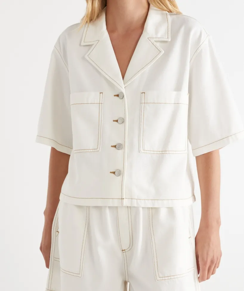 Introducing our new Short Sleeve Denim Jacket, crafted from a soft, lightweight cotton tencel blend for the ideal combination of comfort and style. This jacket is the perfect addition to your summer wardrobe, featuring front pocket detailing and a button down front. Easily style back with our matching ‘Contrast Stitch Short’ for a stylish double denim look. Now Available in two colours