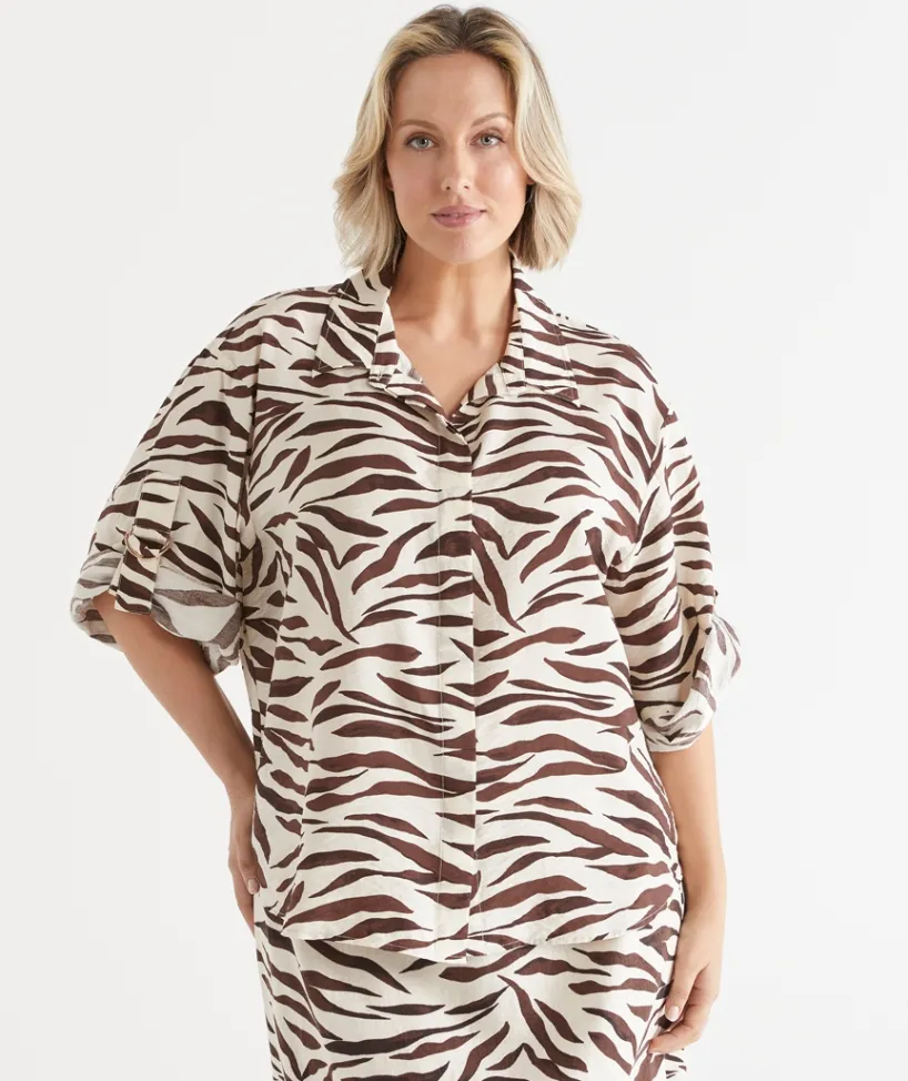 Elevate your style with the Short Sleeve D Ring Shirt, in our striking abstract animal print. Made in a textured, lightweight fabric, it offers a comfortable and stylish fit. Featuring short sleeves with adjustable tabs, this shirt is the perfect pair for the matching ‘Animal Print Pant’ or your favourite denim pant.