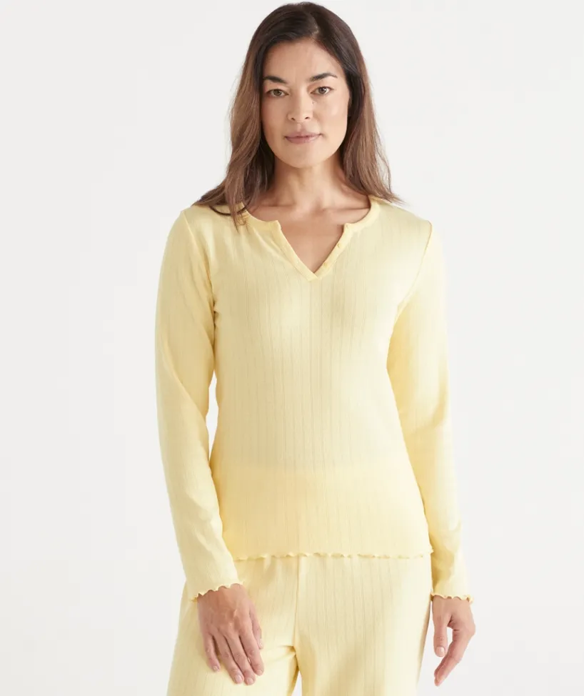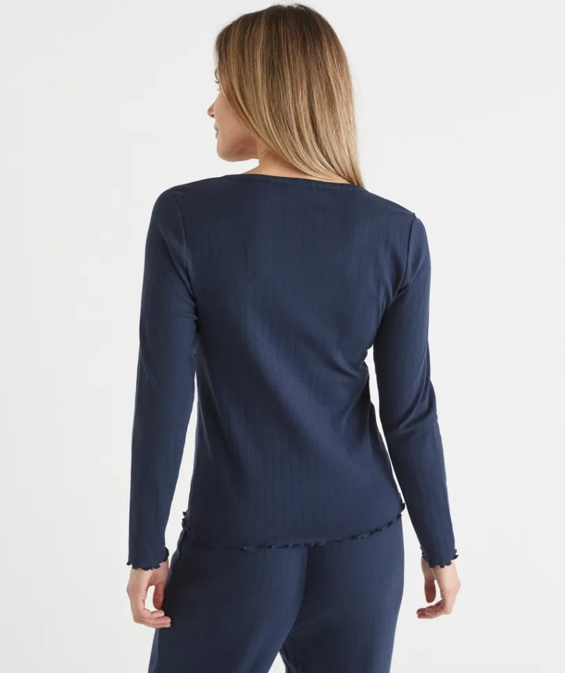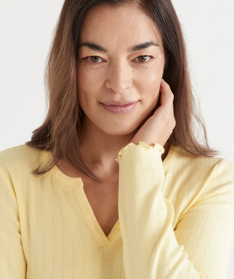 Drift into dreamy comfort with our Pointelle Long Sleeve Pyjama Top, designed for a cosy yet elegant sleepwear experience. Made from soft, breathable fabric with delicate pointelle detailing, this long-sleeve top offers a lightweight feel and a touch of timeless charm. The relaxed fit ensures all-night comfort, while the subtle texture adds a feminine, vintage-inspired touch.
